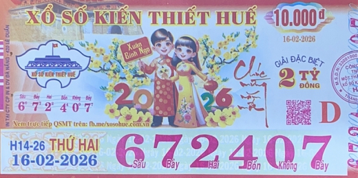 Mẫu vé số Huế Ngày 16/02/2026