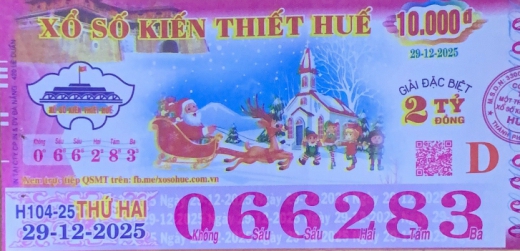 Mẫu vé số Thừa T. Huế Ngày 29/12/2025
