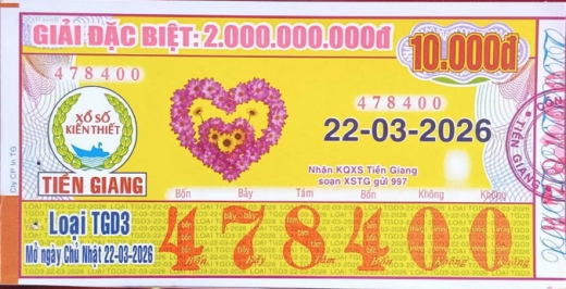Xổ số Tiền Giang mở thưởng kỳ tiếp theo ngày 22/03/2026