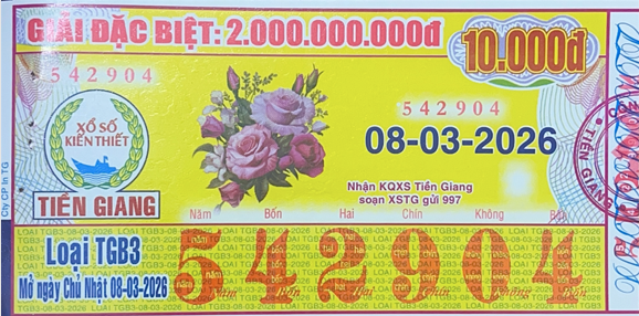 Mẫu vé số Tiền Giang Ngày 08/03/2026