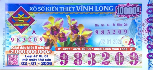 Mẫu vé số Vĩnh Long Ngày 02/01/2026